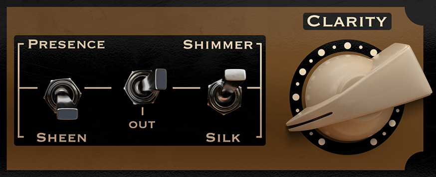 This boosts the gain of whatever Clarity frequency is selected: Presence, Sheen, Shimmer, or Silk. When no frequency is selected (center toggle set to Out) the entire Clarity band, including the gain knob, is bypassed.