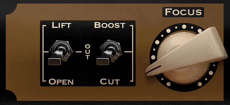 Boosts the gain of whichever Focus frequency is selected: Lift or Open When no frequency is selected (left toggle set to Out) the entire Focus band, including the gain knob, is bypassed.