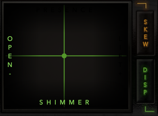 Enabling the Skew control adjusts the XY axes to a custom, non-linear curve, such that 50% of travel on an axis represents roughly 25% of travel on its corresponding gain control. This affords the user much finer control over the subtler, lower gain ranges of the Clariphonic.