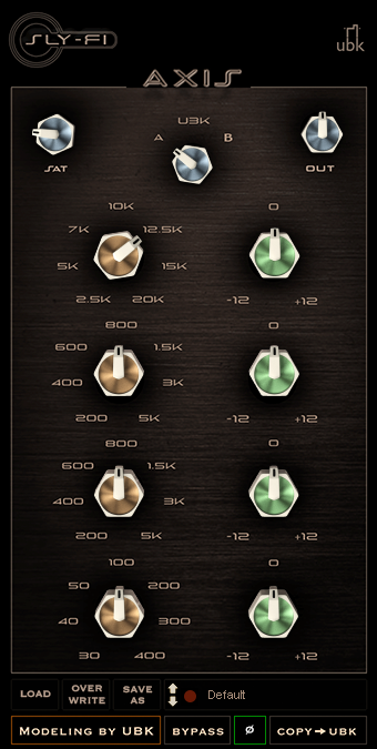 Last, I put both a classic 'A' and modern 'B' mode on a switch with the UBK mode, so you can choose the one that works best for each track. At the request of Tchad Blake, Axis can now transfer your settings from A or B mode straight to UBK mode for fine tuning. It also sports a phase flip switch, because sometimes things just sound better flipped.